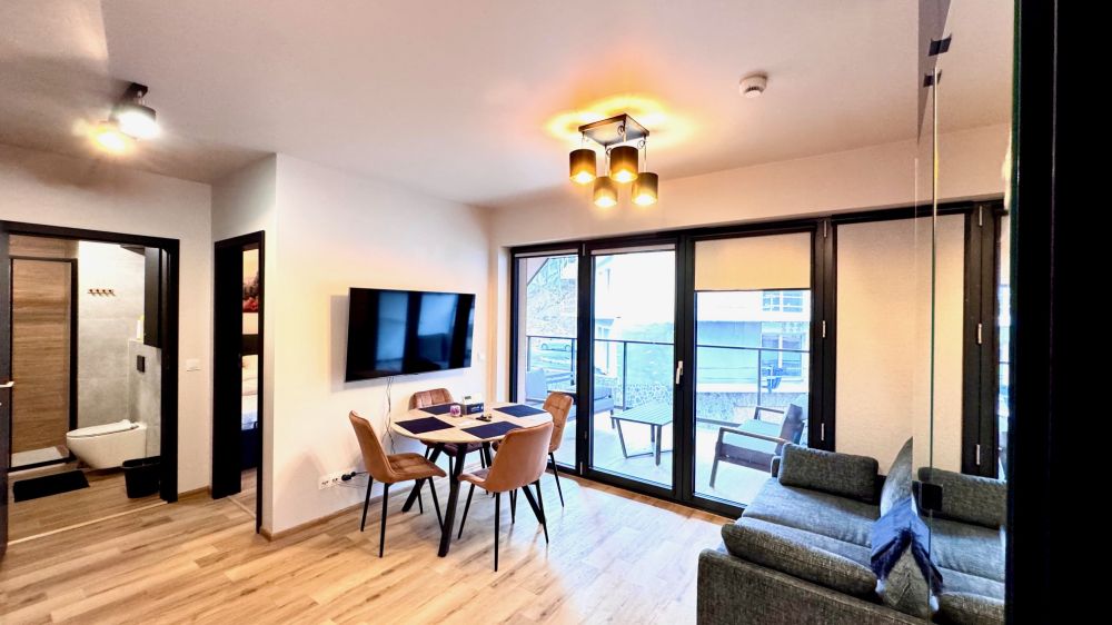 ? Duży balkon widokowy – z relaksującym widokiem na stok i las, który pozwala w pełni poczuć górski klimat.